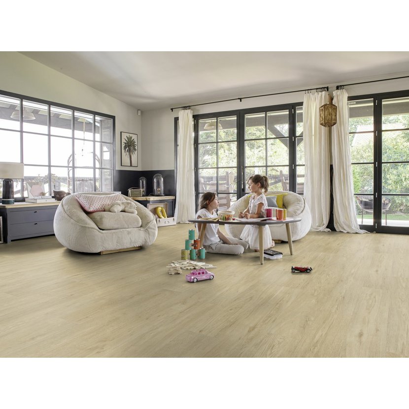 DesignTex 0,35 mm je navržený pro moderní bydlení: celková tloušťka 2,90 mm s textilní podložkou přináší pohodlí a tlumení kročejů (ΔLw ≈ 16 dB), třída 23/31 zvládne běžné domácí zatížení a povrch Pureclean usnadňuje úklid.
