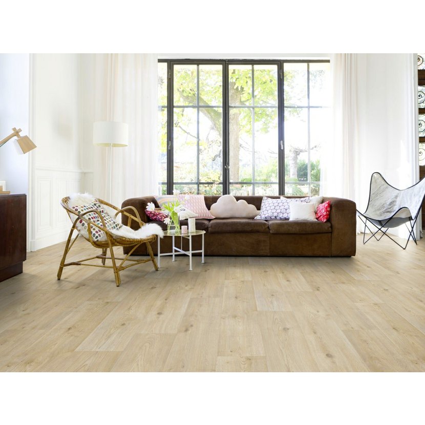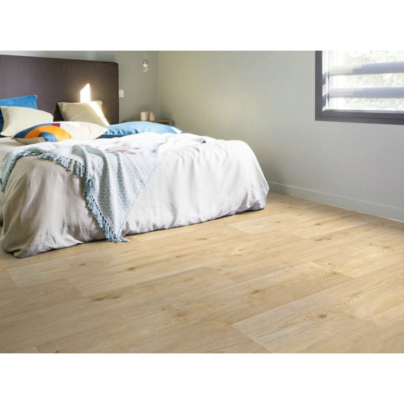 Další vlastnosti:   T-skupina otěru, rozměrová stálost 0,05 %, vtlačení 0,20 mm, λ ≈ 0,25 W/mK, stálobarevnost ≥ 6; do vlhkých místností a na PT (≤ 28 °C).