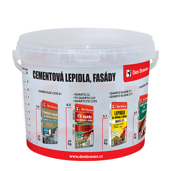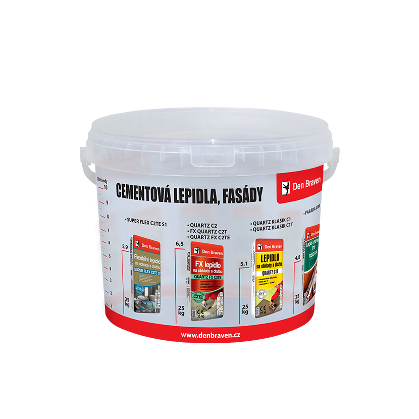 Pro míchání sypkých pytlovaných hmot značky Den Braven s vodou 10L. Na kbelíku je potisk s různými pytlovanými hmotami Den Braven a s vyznačenou spotřebou vody pro míchání materiálů. I jako dárek k objednávce 1Ks.