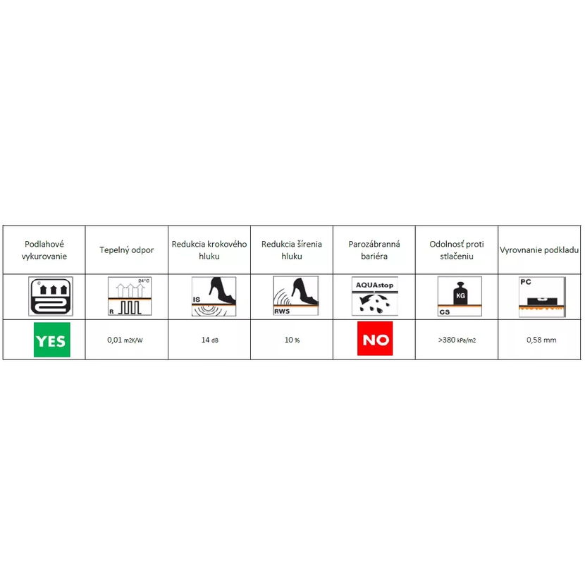 Tepelný odpor je při tloušťce 1,5 mm pouze 0,010 m²K/W, a proto je tato podložka ideální také pro pokládku pod všechny plovoucí podlahy instalované na podlahové vytápění.