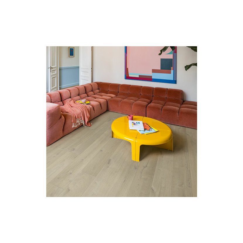 Laminátové podlahy Quick-Step jsou vyrobeny z několika vrstev, včetně jádra s vysokou hustotou a vrchní vrstvy odolné proti opotřebení, což znamená, že laminátová podlaha má přirozený vzhled a budí příjemný dojem.